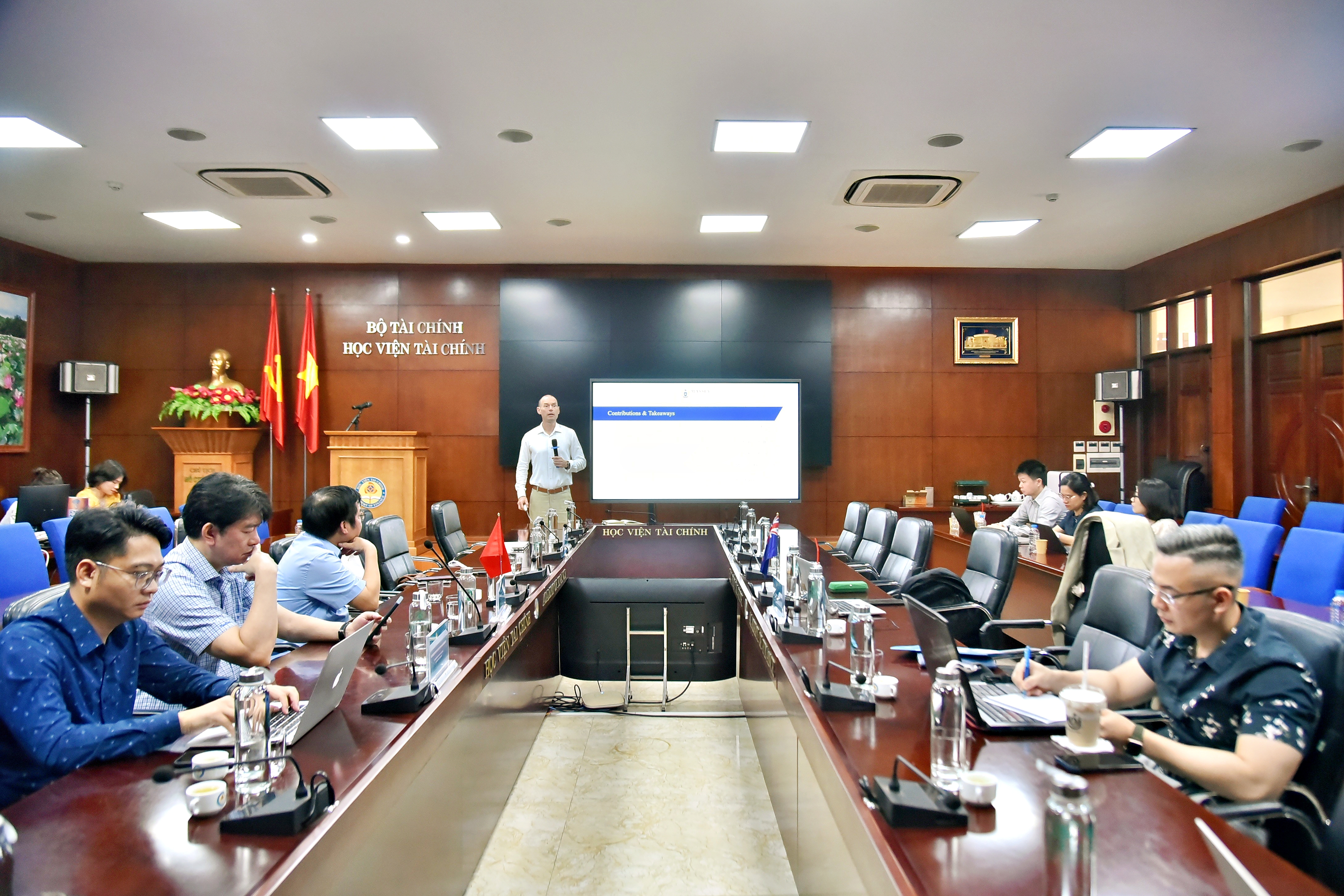 (HVTC) - Trong 2 ngày (14-15/4), tại Học viện Tài chính, Giáo sư Sasha Molchanov - Đại học Massey đã có chương trình làm việc tại Học viện Tài chính. Các buổi trao đổi về xây dựng nhóm, trung tâm nghiên cứu chuyên sâu; Cơ hội hợp tác đào tạo và bồi dưỡng giảng viên, nghiên cứu viên; Tọa đàm xây dựng trung tâm dữ liệu Kinh tế, Tài chính và Khoa học xã hội tại Học viện Tài chính; Tọa đàm chuyên môn theo chủ đề về “Research overview: corporate governance and financial policy” và trao đổi, định hướng cho các nhà khoa học trẻ của Học viện Tài chính.