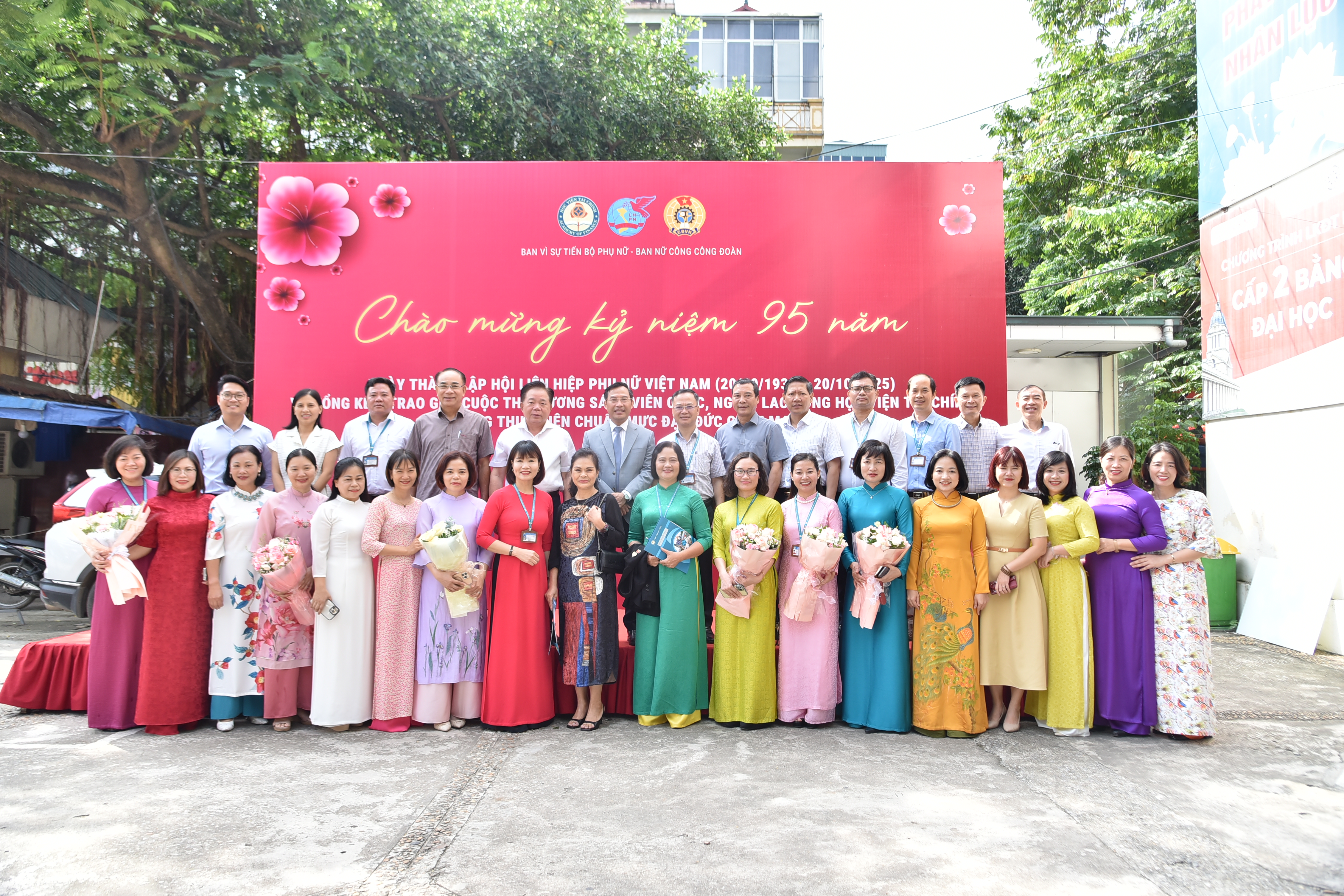 Sáng 20/10/2025, tại Hội trường A1 của Học viện Tài chính, Ban Vì sự tiến bộ Phụ nữ và Ban Nữ công Công đoàn Học viện tổ chức chương trình “Chào mừng kỷ niệm 95 năm Ngày thành lập Hội Liên hiệp Phụ nữ Việt Nam”; “Tổng kết phong trào Giỏi việc nước – Đảm việc nhà; “Trao giải cuộc thi Gương sáng viên chức, người lao động Học viện Tài chính trong thực hiện chuẩn mực đạo đức cách mạng” và Hội thi cắm hoa chào mừng ngày Phụ nữ Việt Nam. Sự kiện diễn ra trong không khí trang trọng, ấm áp, tri ân và tôn vinh những đóng góp bền bỉ của nữ cán bộ, viên chức, người lao động và sinh viên trong Học viện.